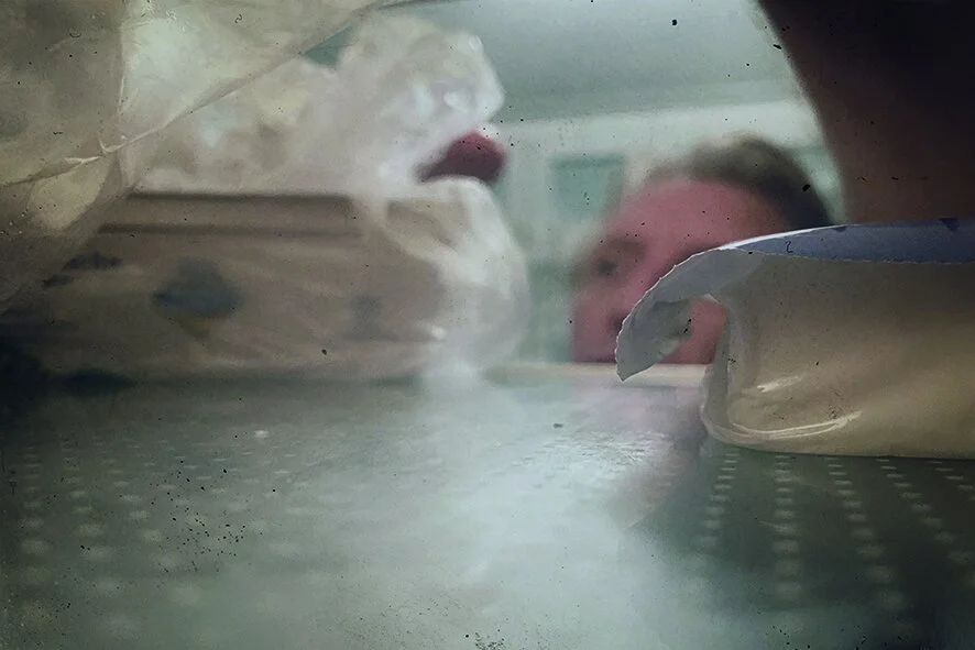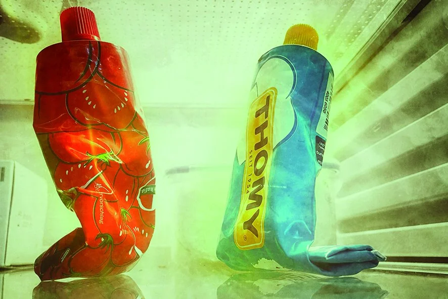 Der Kühlschrank als Biolager arbiträer Ästhetik. Verfroren und unterkühlt. In wohltemperierter Synthese geordnet und kategorisiert. Milchgemachtes, Tomatengelage, Gemüsekäfige, Flaschen- und Tubenballett. Entdeckungstouren durch gekühlte Haltbarkeit. Totes Leben auf halbem Kubik. Es lebe das Best before Refugium. Bis dass der Schimmel uns scheidet. Auch das ist ein Stück Heimat, ganz nah, ganz vertraut.