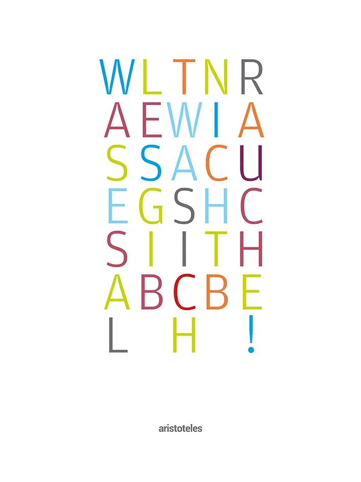 Zitate von bemerkenswerten Köpfen, deren Hinterlassenschaften einem Kandiszucker gleichen, der sich gleichsam im Tee langsam entfaltet in Verständnis und Wirksamkeit. So wird Inhalt (das Zitat) und Form (die Typographie) eine neue Einheit, verstärkt einander und schafft weitere Wahrnehmungsebenen.